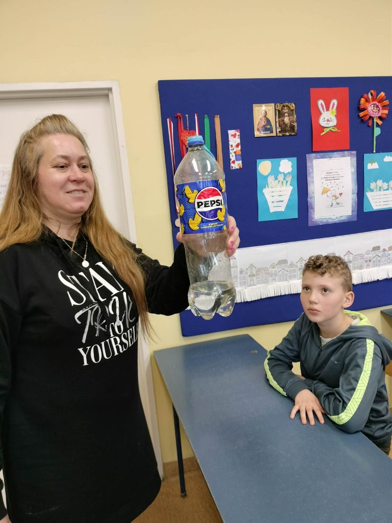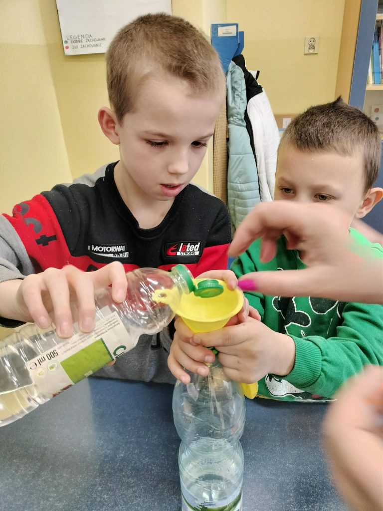 Uczniowie biorący udział w zajęciach byli zaangażowani a wynik doświadczenia wprawił ich w zachwyt.